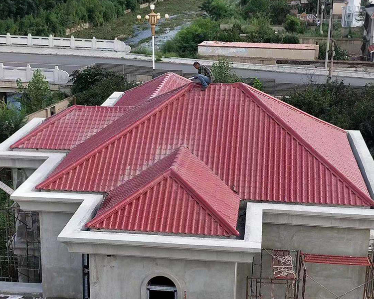 主瓦安装时要根据当地风向,逆风安装,搭接-个瓦波, 两侧同时进行。安装正脊瓦时将首张脊瓦截掉一-段后再安装。
